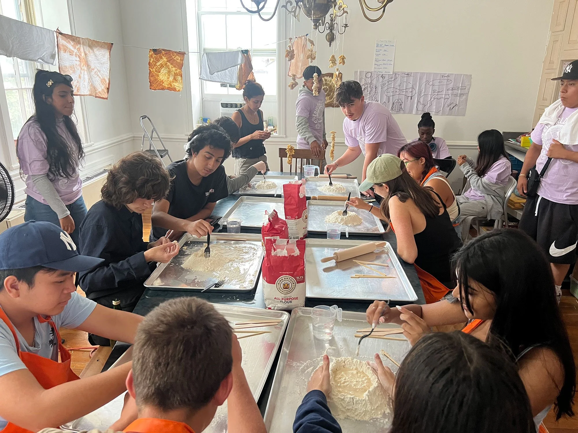 This cohort created recipes, table cloths, ceramics, and sculptures to bring their vision of What’s Under the Surface to life. Youth used turmeric dye and recycled fabrics to create tablecloths, beaded hand-rolled pasta ornaments for a chandelier, built a 10” foot metal tree-like sculptural centerpiece, took polaroid photos and made ceramic place settings inspired by each participant's own background.